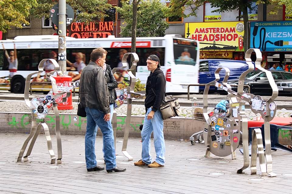 What I loved most about my walk was the contrast of old and new buildings following both industrial and elaborate architecture styles and how the city went from statement-making government buildings and concert halls to plastic-sign fronted, grimey-feeling streets lined in sex shows and "Amsterdam Headshops" in less than a mile. Oh and I really loved the smiling face graffiti that you see everywhere in this city. I saw so many I expected a Google search to result in web pages dedicated to this simple yet effective street art... but alas, I still don't know who is responsible. If you're aware, please enlighten me!