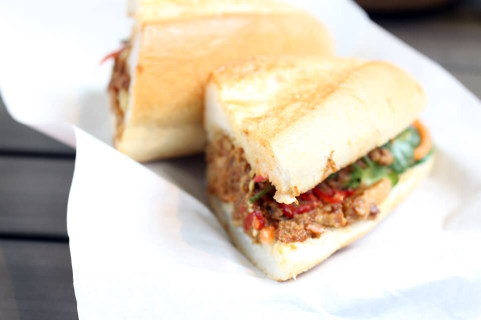 We sort of did that when we returned last Sunday for a late lunch and it was sort of successful. Although we rocked up at around 3pm we still had to employ divide and conquer tactics to spot a spare table and I did spend a little longer than I would have liked waiting for my banh-mi sandwich from Viet View, the vietnamese street food stand. (But you know what? It was totally worth it!) NewMan did his usual thing of trying as much as he can from as many contrasting cuisines as possible (a Vietnamese spring roll, a Dutch beer and a small hill of Spanish Iberico ham) and our friends who were visiting tucked in to a Mediterranean meze platter. We then treated them to a portion of Dutch bitterballen because they've never tried them before. Yum.
