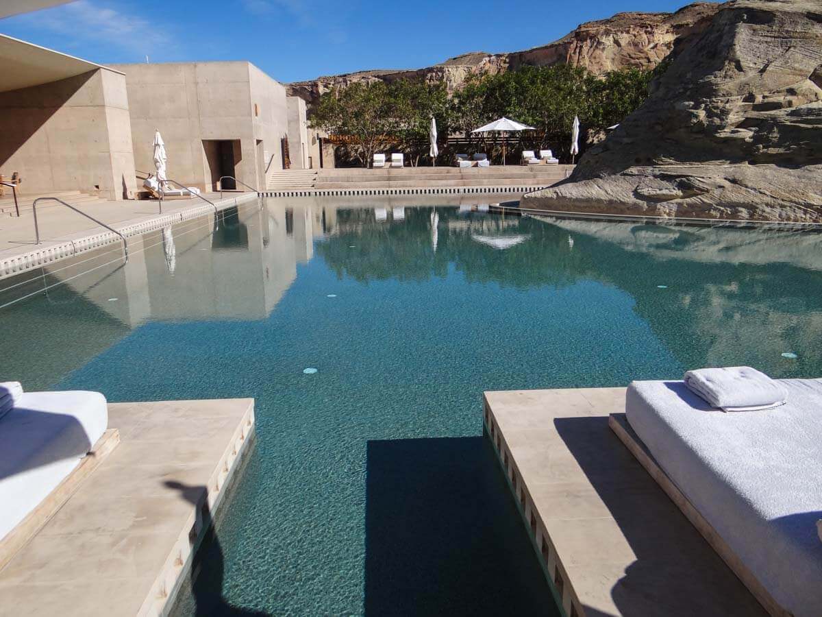One of our favourite areas to chill out in was main pool area. It’s cut into a lofty rock escarpment and the main pool curves around this. So as you swim, you’ve got an elegant, modern resort on one side and on the other a craggy rock face that’s millions of years old. We had a wonderful stay at Amangiri and would love to return (but not with the kids)!