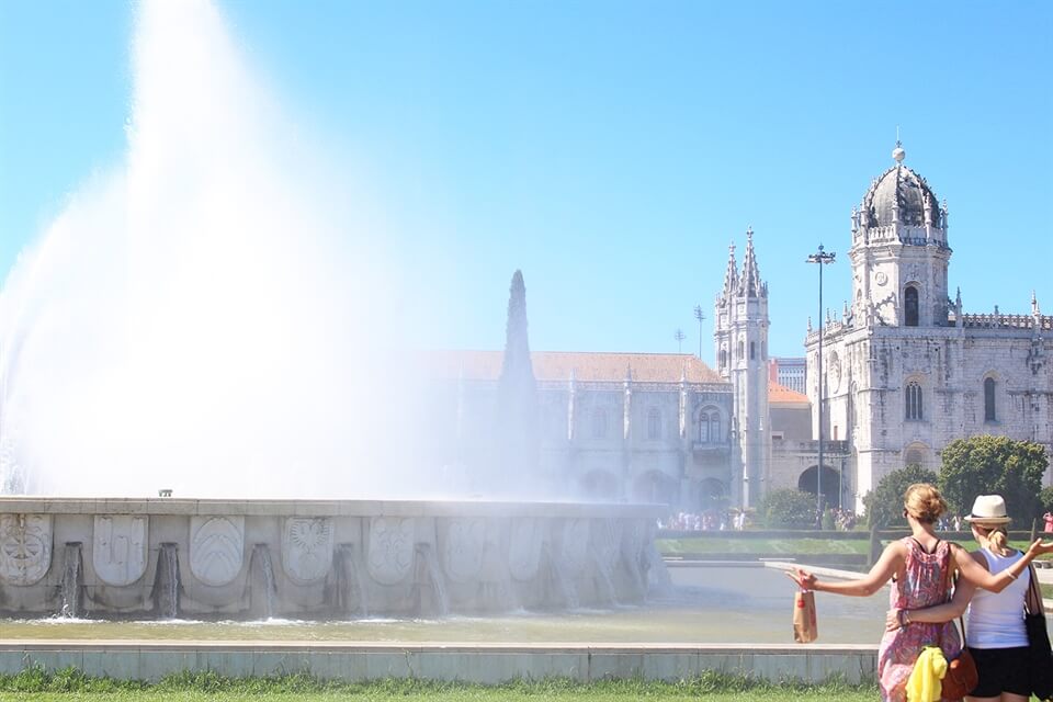 The main reason we wanted to visit Belém was for the famous Pasteis de Belém, of course, but while we were there we admired the impressive Mosteiro dos Jerónimos from afar, stood by the waterfall in its gardens (as we really needed cooling down!) and then walked along the waterfront from the Padrão dos Descobrimentos (Discoveries Monument).