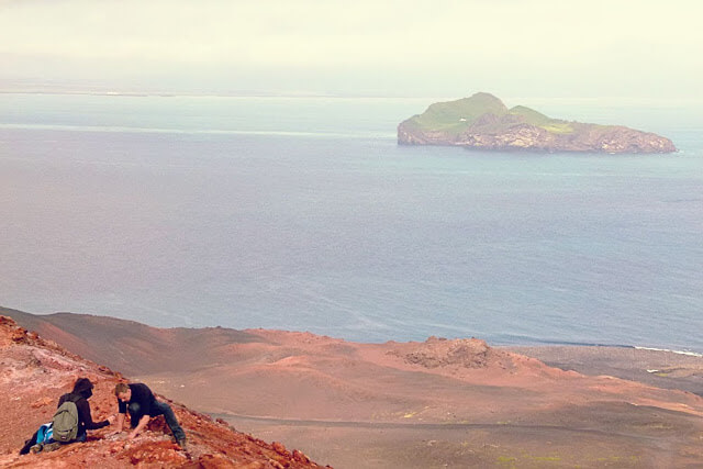 We dug around a little with our hands and found spots hot enough to cook on. Forty years is but a short time in volcanic time, Eldfell wasn't even close to cooling down.