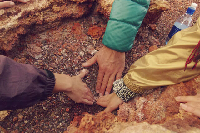 We sat down on the crater's edge and marvelled at how heat was still emerging from the ground.