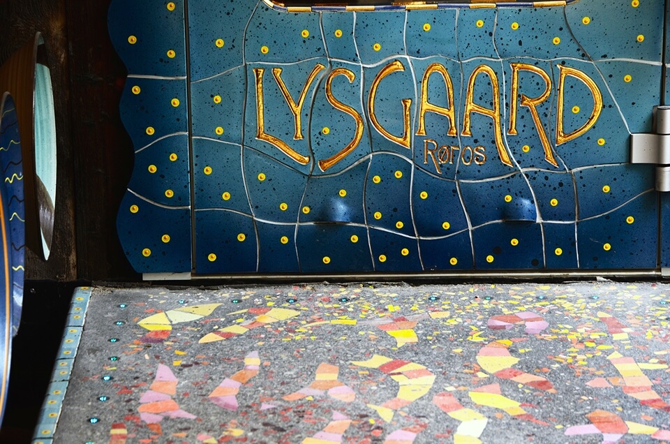 Wandering down the alleyway from Kjerkata (one of Roros’ main streets) and into the courtyard of Lysgaard Keramikk feel like you’ve fallen down the rabbit hole. Fall for the glazed blue mosaics covered in twining snakes, huge columns studded with golden stars, mounted plates in ochre yellow and sunshine orange and look up to catch the suspended statues hanging from the tree line.
