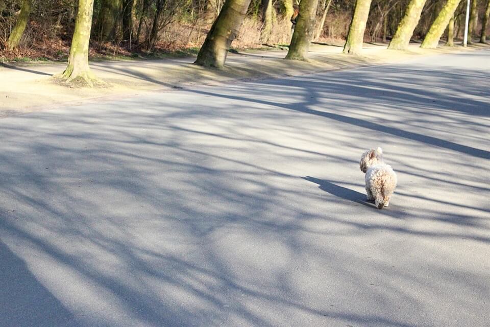 On long bikes rides (i.e., to Amsterdam Forest), we actually pull out our dog bike trailer! These are trailer attachments that you can affix to the back of your bike in less than 5 seconds. With two sturdy wheels and lots of flaps for ventilation and sight-seeing, it's a great way to bring your doggie to explore the country with you. If you're looking to purchase one, you can also refer to this dog bike trailer buying guide that I wrote based on the research I compiled during my own shopping experience.