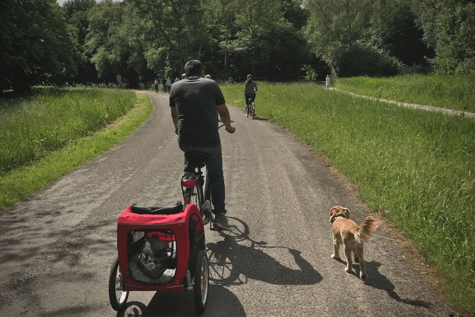 With bike lanes all throughout the country, it's extremely convenient to bike around to explore new areas. On shorter trips (i.e., less than 20 minutes), we've taught my dog to run alongside our bikes on a leash. It's a great way to get her exercise and to get her to parks that are a bit further away.