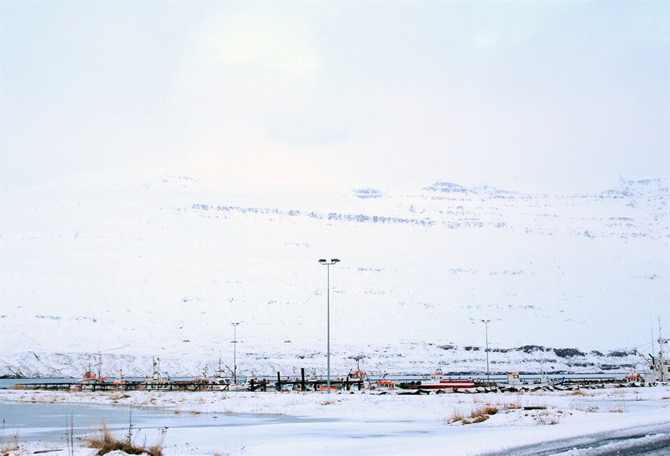 Apparently, Seyðisfjörður is a completely different town in the summer; full of life and bustling with visitors as this is where a lot of the passenger ferries from the Faroe Islands and Denmark arrive and disembark. I suspect most of these tourists don't stay long in Seyðisfjörður but I can imagine that arriving in this sleepy, remote and indeed, detached town, is quite a way to arrive in Iceland. There were the painted corrugated houses, a painfully cute church in a pastel blue, and a collection of fishing boats rocking side to side by the water's edge, all with the fjord's steep, mountainous sides rising up behind them.