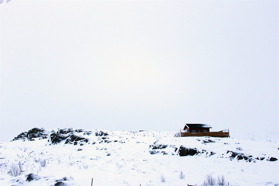 To say that where we were, holed up in the wooden cabin that smelt so strongly of pine, unbelievably cosy as the wind howled around us, was remote, and other-worldly and atmospheric is a gross understatement. Of course, this was heightened by the very limited daylight - around four hours total - and what light there was never got much brighter than the dull hue of dusk or dawn. These photos also feel like a huge understatement because they don't really capture how secluded we felt, how wild the land was and how cosy it was inside the cabin. I've never really stayed anywhere like it, but I hope they capture a bit of the adventure we had while we were there...