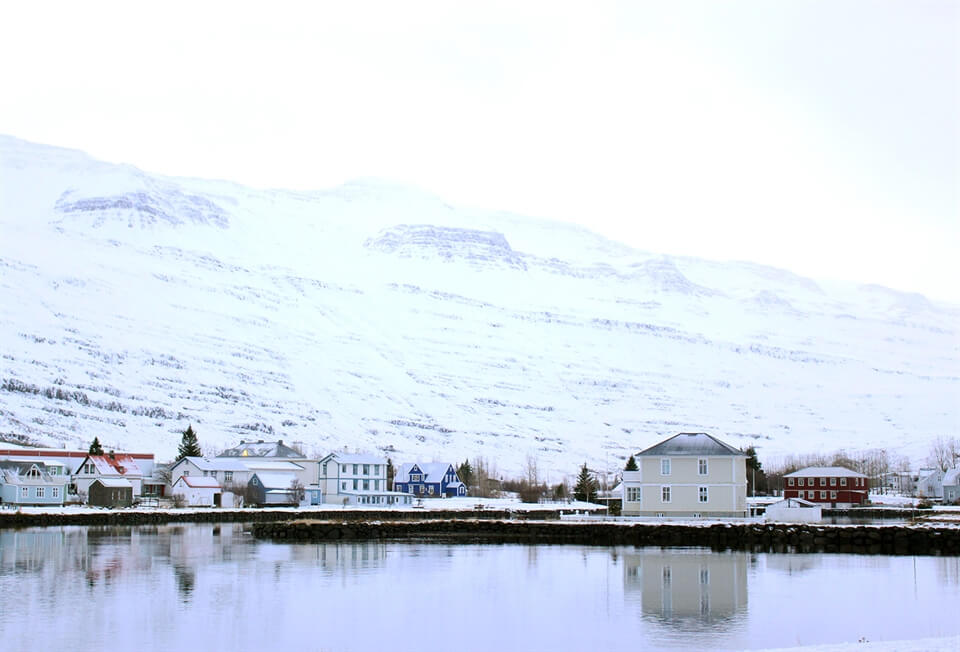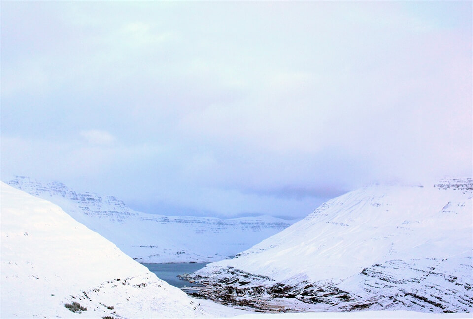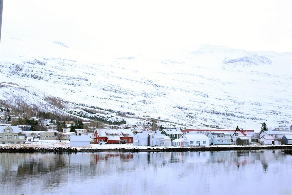 We didn't exactly do much while we were in Egilsstaðir. Firstly, this was because we were with family and it was Christmas so we had important things like eating, drinking and talking to do. Secondly, there wasn't that much to do - it's a town of less than 3,000 people and most things were closed because of the time of year. Thirdly, eventually the weather became more of a problem. Despite having one of the mildest early winters in recent years, the weather turned a few days after we arrived and the snow fell, the wind would whip against the windows and roads were closed. It was also Christmas so not much was open, and as soon as there was snow on the ground, walking around (especially) with a toddler in a pushchair was near impossible, especially as the snow quickly turned to ice. One day my partner and I left Baby Bird with the grandparents and we walked around the town catching views of sunset (at around 3.30pm) from the top of a hill near the church, and on another day we all went on a short drive to a nearby town the other side of the mountain that sits behind Egilsstaðir. As we were driving, the weather turned on us again and the higher we climbed (to go up and over the other side) the whiter and wilder it got. Once we were in Seyðisfjörður, we felt like the only people alive (or awake) there. Everything was closed. There wasn't a single person walking around (which is fair enough because there was a lot of snow and it was barely above freezing) and each time a truck or car passed us by we were a little shocked. Lucky for us a single petrol station was open so we parked up there and ate hot dogs and drank coffee - something which apparently is very Icelandic to do, so I didn't feel like I was completely missing out on a "cultural" experience.