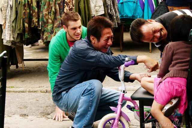 You feel like a substantial and successful city. The streets are clean, the grid street system works well and people appear happy to be here. There have also been unexpected moments of loveliness and quirkiness like a dog waiting patiently for its owner, some boys breakdancing on a street corner and these men all working together to fix this little girl's bike in Kensington Market. Oh yes the bikes, I've been happy to see your bikes.