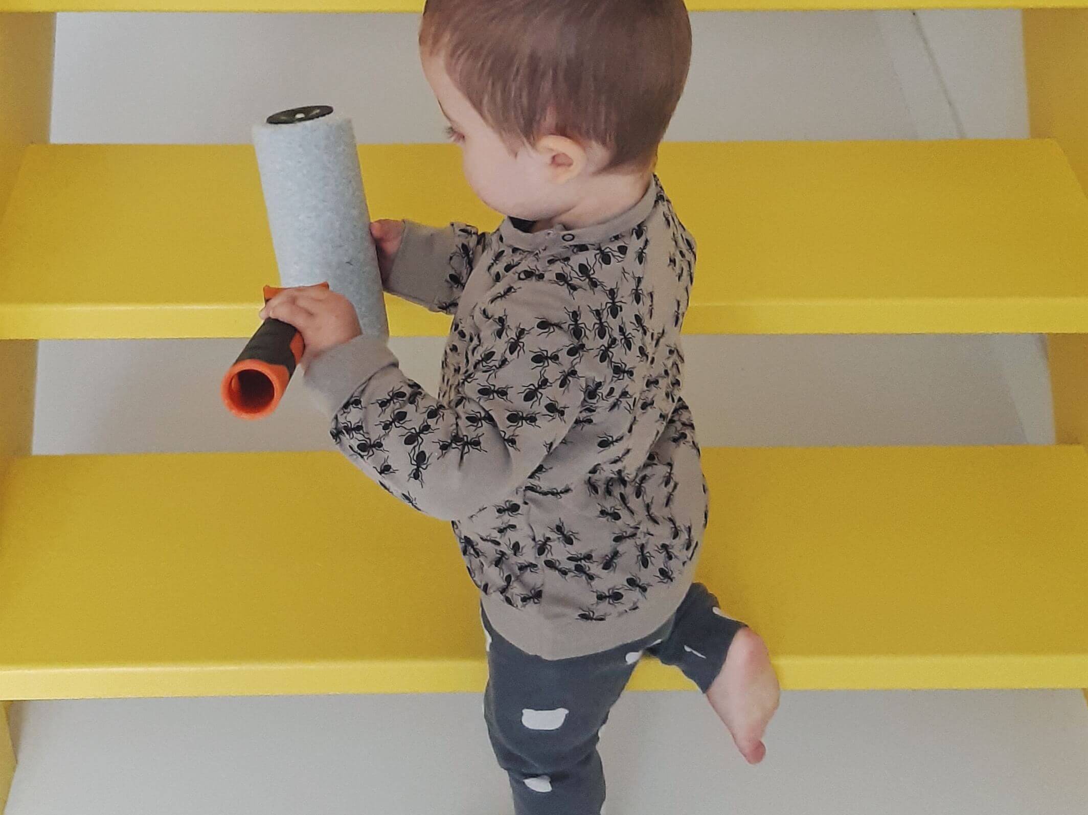 But this year something stirred and switched inside me. After living here for the best part of a year, and seeing how the light moved around our home, I realised we needed a bit more colour and texture to bring some cosiness and character inside. And that is exactly what we started to do, by swapping our white kitchen cupboard fronts for wood and navy blue panels, by buying rugs with lots of colours and textures, and by painting some stairs the brightest shade of yellow they are like a literal ray of sunshine!
