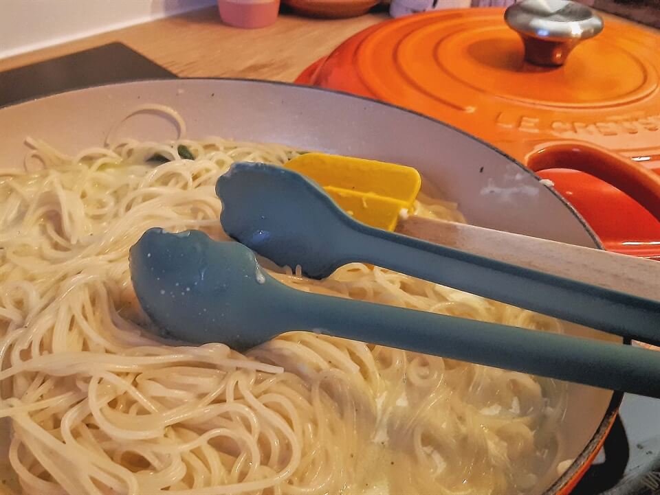 As an important note, I do recommend you get a decent large dish for these dishes; ideally one that is big enough to lay spaghetti down flat and for the heat to be spread around a large surface area. My partner gifted me this beautiful Le Creuset dish for my birthday last year and it's perfect for these dishes; I know it's an expensive item, but honestly, I will hopefully have it for life and considering we use it at least twice a week for these pasta meals or other food, it's already been worth the price tag.