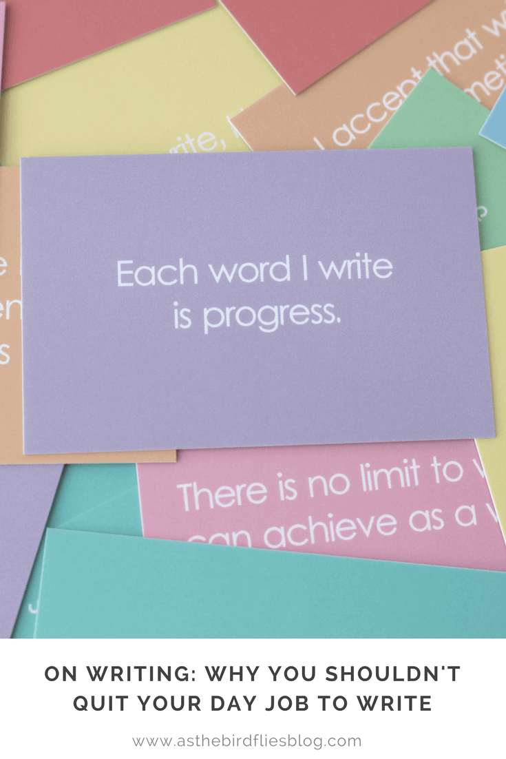 The suggestion is - if you aren't quitting your job, you're doing it all wrong. You're not taking this writing thing seriously. You're a failure.