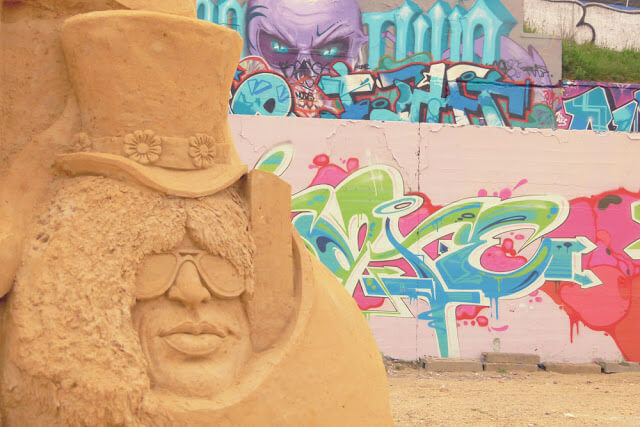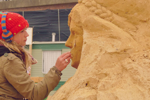 We went to the Sand Sculpture Festival at Black Rock Beach, got soaked when the rain started to fall, took shelter by drinking tea in a shed, hopped on the Volks Railway to take us to the Pier, played on the 2p slot machine games (I won three pink penguin key rings; it became an addiction), took advantage of a dry spell to walk up to North Laine, had lunch and courgette cake at the perfectly named Little Bird on Kensington Gardens, popped in as many vintage clothes and charity shops as we could, feared more rain so caught the bus back to the flat and took a nap before heading out to see Brighton's Gay Men's Chorus as part of the Brighton Fringe Festival. They were fabulous. Jenny is fabulous. Life is fabulous.