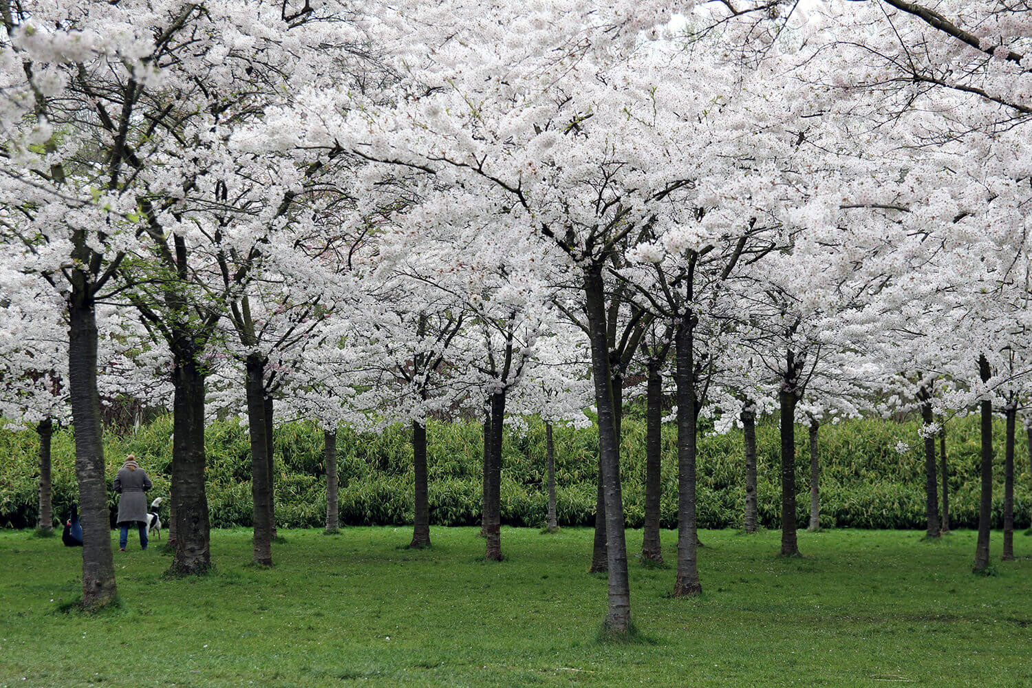 Firstly, you'll need to make sure you go at the right time. We visited on the last day of March and I would say that the week following our visit would have been the best week, although the week before would have also been pretty good. The blossom was just starting to fall in the wind, but there were also many buds that had yet to burst open. They say that you really only have a two-week window to see the blossom, but either end of that will not be optimal of course, so I would aim to be there within the first week of April, or thereabouts because of course, how the summer and winter preceding the spring have gone will also influence with the blossom blooms in Kersenbloesempark.