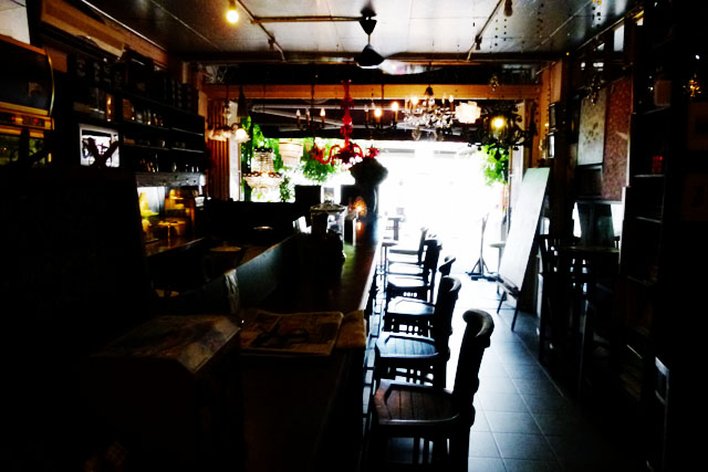 Tucked away down a side road branching off from a road of shops and art galleries which was close to the centre of town, but certainly not spitting distance from the city's main hub of activity. The internal appearance of Limau-Limau Cafe isn't dissimilar from a twee vintage inspired coffee shop, the likes of which are now common in European cities. Yet it is a rare sight in Malaysia where Western-influenced restaurants or cafes tend to be more modern US hospitality complete with neutral colour schemes and sharp lined, slick furniture and service. Limau-Limau is none of these things, thank goodness.
