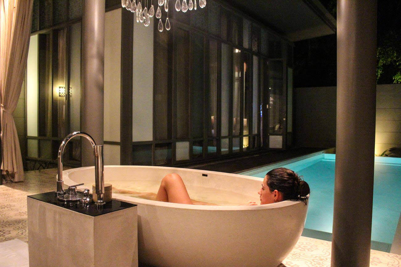 While the Naka has the perfect romantic setting and its own private beach, it is completely different to what most would consider a romantic luxury resort in Phuket. Clear lines, modern designs and no frills (definitely no folded swans on your bed!) are part of its charm. Each villa offers plenty of room and privacy with stunning views over the bay and some killer sunsets to match. My favourite was the private infinity pool that is actually big enough to do laps in, and the layout of the villa had enough space for a whole family to spread out or in my case a travel blogger with lots of luggage. It's also in a great location on Kamala Beach which is close to other beaches but not too far from the airport so your transfer will be well under an hour.