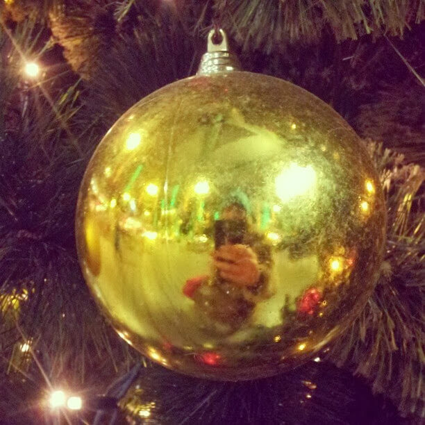 Here is a photo of me staring into a Christmas bauble in Schiphol airport.