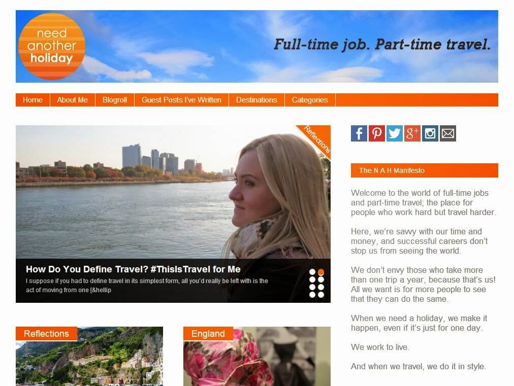 Need Another Holiday When I first met Clare (again in Rotterdam) I kept banging on to her about how much of a great concept her blog was based on. For all the travel blogs that are out there, very few of them actually focus on just "holidays". While I was almost certainly telling her something she already knew, I've loved watching Need Another Holiday grow thanks to a special combination of lots of information with her sharp and witty personality. Her (beautiful!) Facebook photos are always accompanied with a humorous comment and I really look forward to seeing where Clare, her blog and her holidays take her.