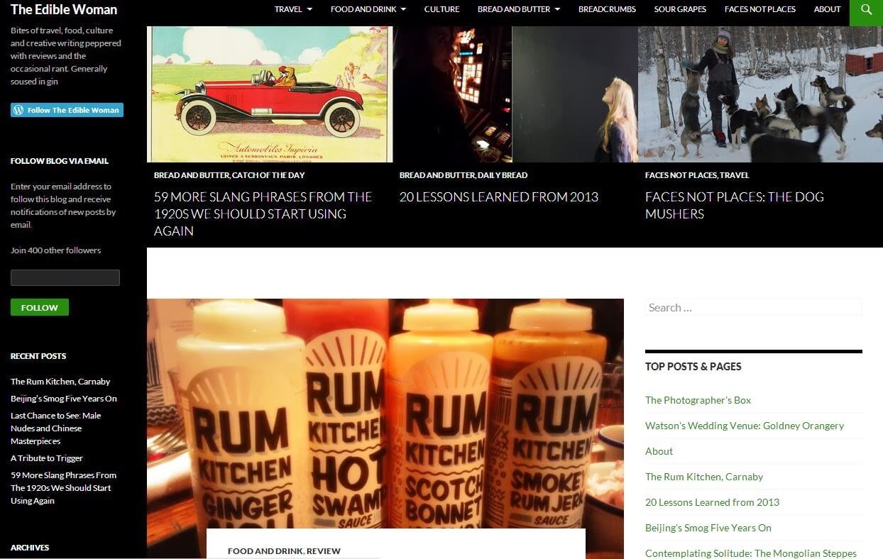The Edible Woman It's not often you're introduced to the woman before the blog, but I was lucky that Emma was also on my dog-mushing trip in Norway. Aside from helping me survive outside of my comfort zone, I'm grateful to Emma for introducing me to snapshots of her life and travels on her relatively new (but packed full of stories) blog The Edible Woman. I love her writing in this piece about contemplating solitude in Mongolia, I smiled the whole way through her article about our dog-mushing experience and I will certainly steal some of these tips on writing by Henry Miller.