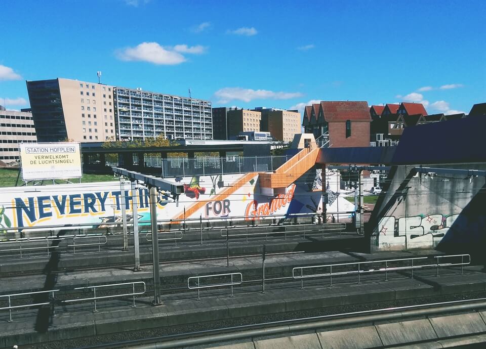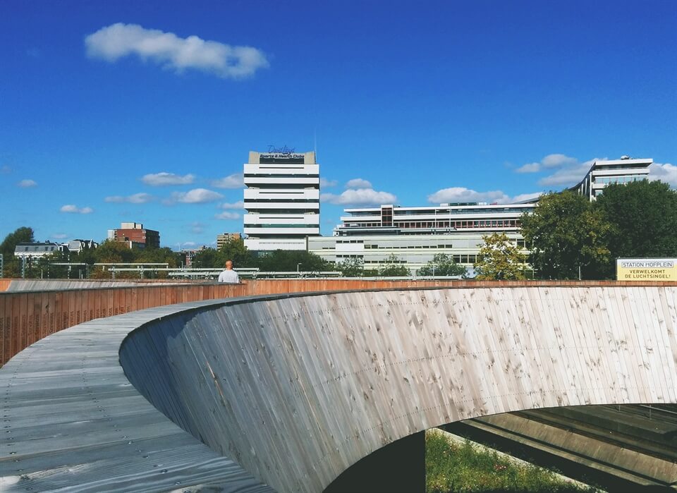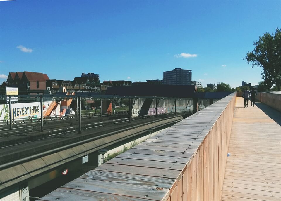You can read more about the bridge's journey from idea to funding to the stages it was built in here. You'll also see from this website that it's associated with a few other connected projects; DakAkker (a rooftop garden where vegetables and other produce grow), Station Hofplein events and exhibition area (which I didn't see so I don't think it was ready when I visited) and Park Pompenburg which was once storage for the railways but is now a public space for barbeques, gatherings and outdoor sports - again I didn't get a chance to see this.