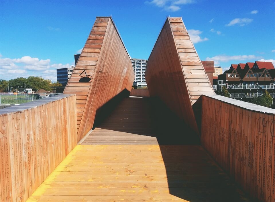 Luchtsingel represents many things, not least, community spirit. It's also a slice of calm in an otherwise busy part of the city. And it's beautifully simple too. Just wood, a little height, a lot of air and a way to see the city from a different perspective, surrounded by the names of people who wanted you to enjoy just that.