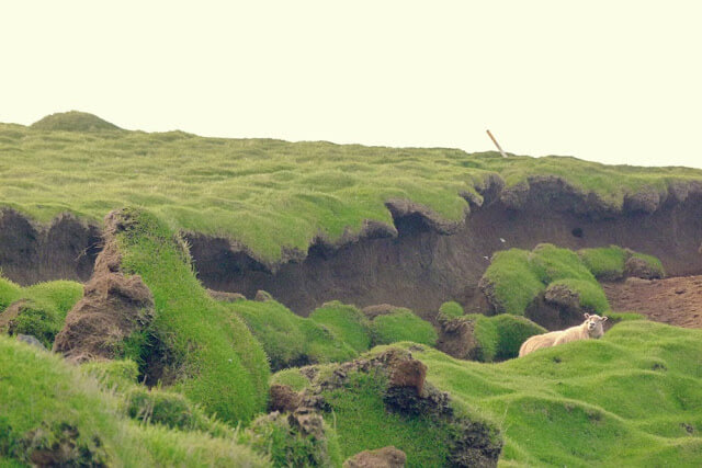 I've since learned that there is a special puffin observatory tower you can visit to take a proper look at the puffin colony, their activity, nests and even eggs, but we didn't do that, and in many ways I'm glad we didn't as my visit felt more authentic if a little more rugged, especially when the sheep who also chew the grass on those lush hilltops gave us fixed stares and slowly inched towards us...