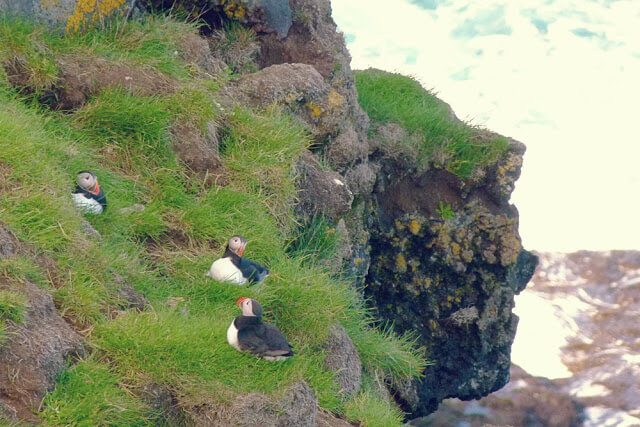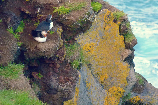 Puffins are migratory birds. They are beautifully colourful, wonderfully expressive and in the summer months around eight million of them like to descend upon the cliffs of Heimaey on the Westman Islands. That is where you will definitely find puffins in Iceland in summer months, specifically from mid-April to mid-August.