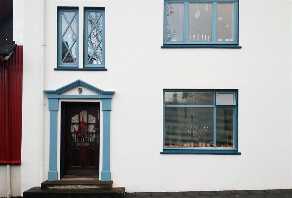 After letting Baby Bird get out of his buggy for a runaround inside Harpa, we then strapped him in again (after only fifteen minutes or so of chasing/struggle) and then we walked around the streets a bit more, hoping that he would fall asleep. This was not to be. He didn't really calm down after being forced back in his pushchair and instead we walked around with a screaming baby for the next thirty minutes, trying in vain to soothe him to sleep, getting strange looks from both tourists and Icelandic locals. I'm pretty sure his protesting and outrage was only a few more minutes away from warranting us a spot on the evening news, so in the end we did indeed give in and my partner walked him home for a proper nap while I stayed out walking around and taking a few more photos of all the pretty houses that looked more Christmassy than tinsel, even in the light drizzle that had started to fall...