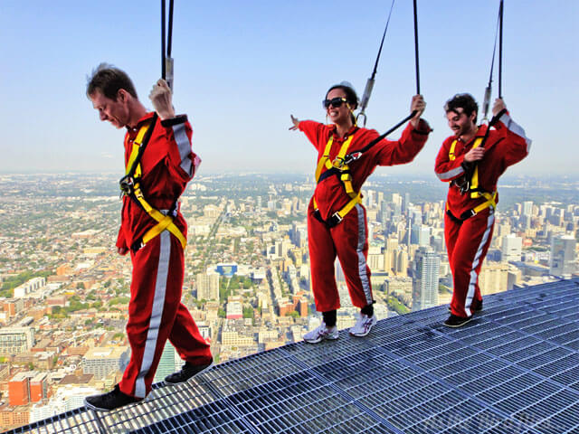 Defying gravity doing the Edgewalk on the CN Tower,Toronto