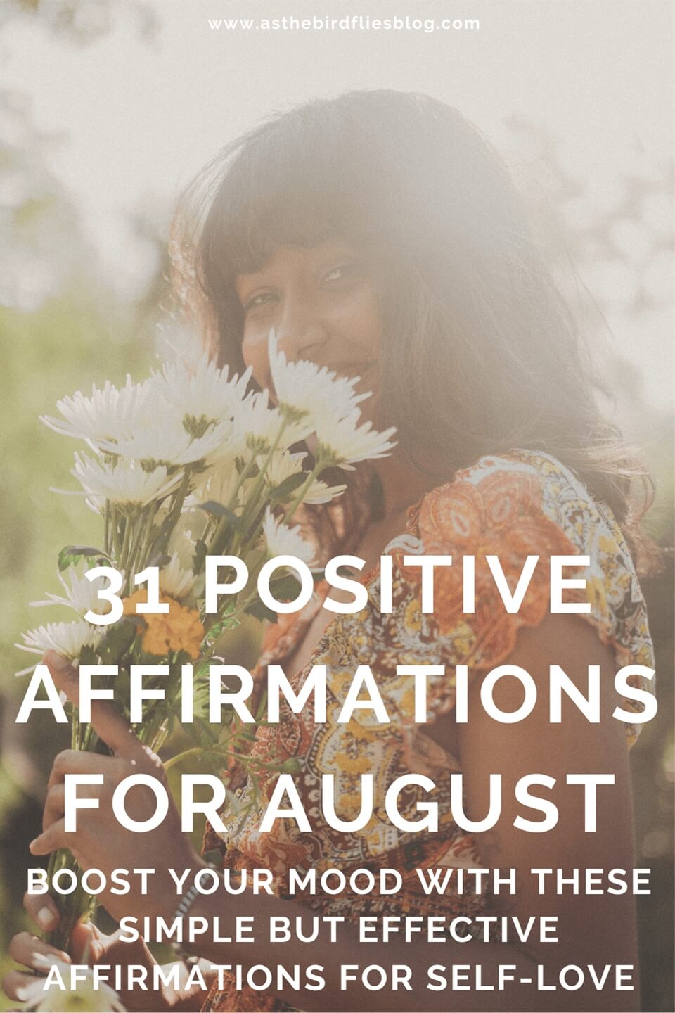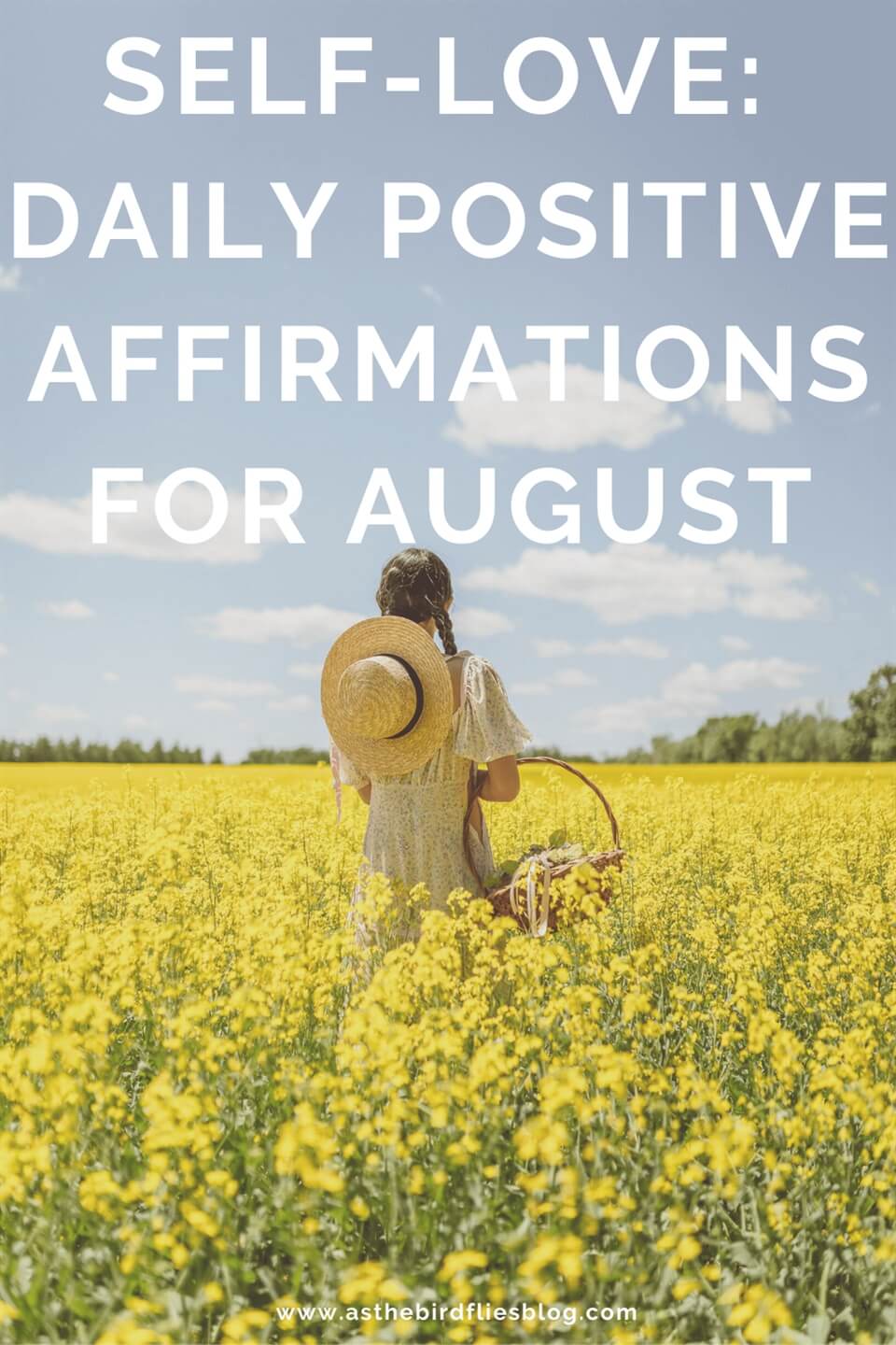 Find all the affirmations I shared for January, February, March, April, May, June, and July via those links. And you can read some of my lists of positive affirmations for specific situations or moods, like these 100 daily positive affirmations here, 50 positive affirmations for depression, affirmations for anxiety, 100 healing affirmations, and why all writers should try affirmation. I also share near-daily affirmations on my Instagram pages: @asthebirdfliesblog & @writenowcards.