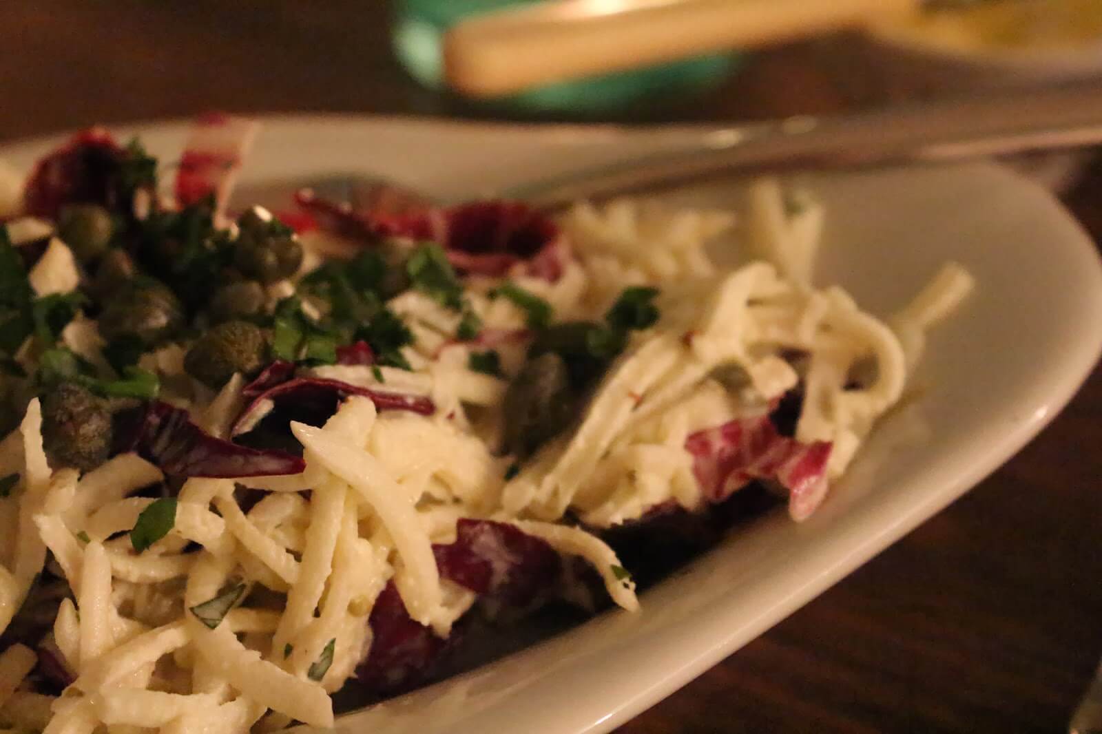 For Marit, it's every Thursday, Friday and Saturday evening, when she opens up the ground floor of her (beautiful, period property) home and welcomes knowledgeable local residents in Amsterdam's Oosterpark area for a seasonal menu of vegetarian food. With no meat and no fish in sight, we were treated to a choice of three starters (I ate sweet potato and coconut milk soup, my companions ate perfectly parcelled jerusalem artichoke ravioli), a fascinating selection of pastry and potato treats as a main with salad side dishes and finally there was a choice from a trio of deserts; somehow I squeezed in a slice of lemon and pistachio cake.