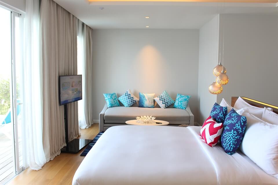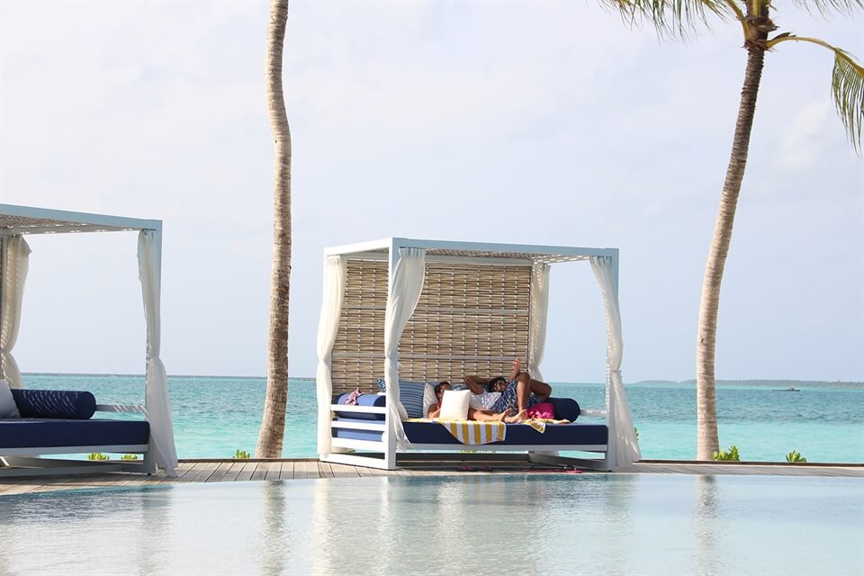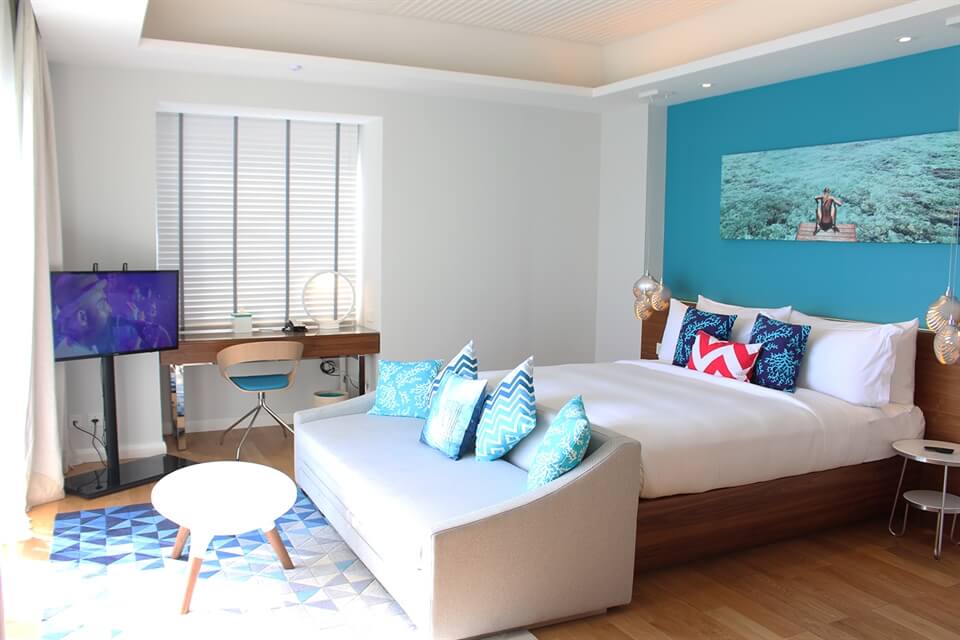 Speaking of our villa, and the other types of accommodation available at Kandima, here are some pics of a few different studios and villas as I was lucky enough to have a nosey around the options, including the entry level Sky Studio that is designed to open up the market to other budgets. I was surprised to see that the interiors are all very similar, both in terms of design and finishings but also in terms of space and comfort levels. And every single studio or villa had a luxurious (and very comfortable) sofa bed so families can easily occupy all options. I would also add that while the Ocean Villas were the most expensive and most spacious, I actually preferred our Beach Villa in terms of location and the beach access. It's also the very best option for young families as both the Aqua Villas and the Ocean Villas are elevated over sea water and there are no railings around the terraces which gives me heart palpitations just thinking about it...