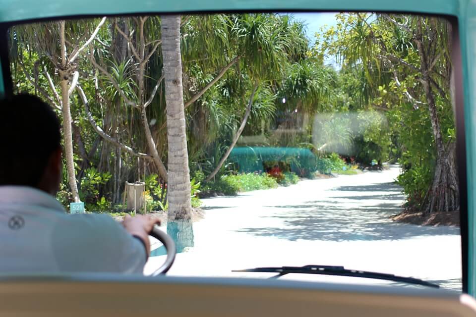 Perhaps you're wondering what's missing from a place like this that isn't luxury, but is "lifestyle"? Well, it was explained to us that the main difference is the absence of the usual Maldives extras like a butler service, a turn-down visit by housekeeping in the evening and on-demand buggy lifts to wherever you want to go. I didn't miss any of these extras apart from the on-demand buggies but that's purely because waiting in the blazing sunshine for a bus or walking around the island with a toddler often proved a little stressful or difficult (sand and pushchairs are not friends). But there was even a solution to this; we hired bikes (at $5 USD++ a day) and managed to fashion a seat for Baby Bird out of the front basket. I hasten to add that this was COMPLETELY AT OUR OWN RISK and we were probably breaking a few rules in doing so, but you can take the family out of Amsterdam, but you can't easily take Amsterdam out of the family! This meant we could get around easily and not have to worry about sunburn our waiting for the buggy. My partner and I also used the bikes to explore the island and head up to the Beach Club that was at the other end of the island from our villa.