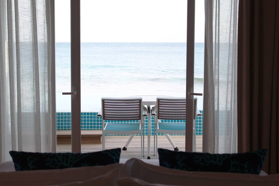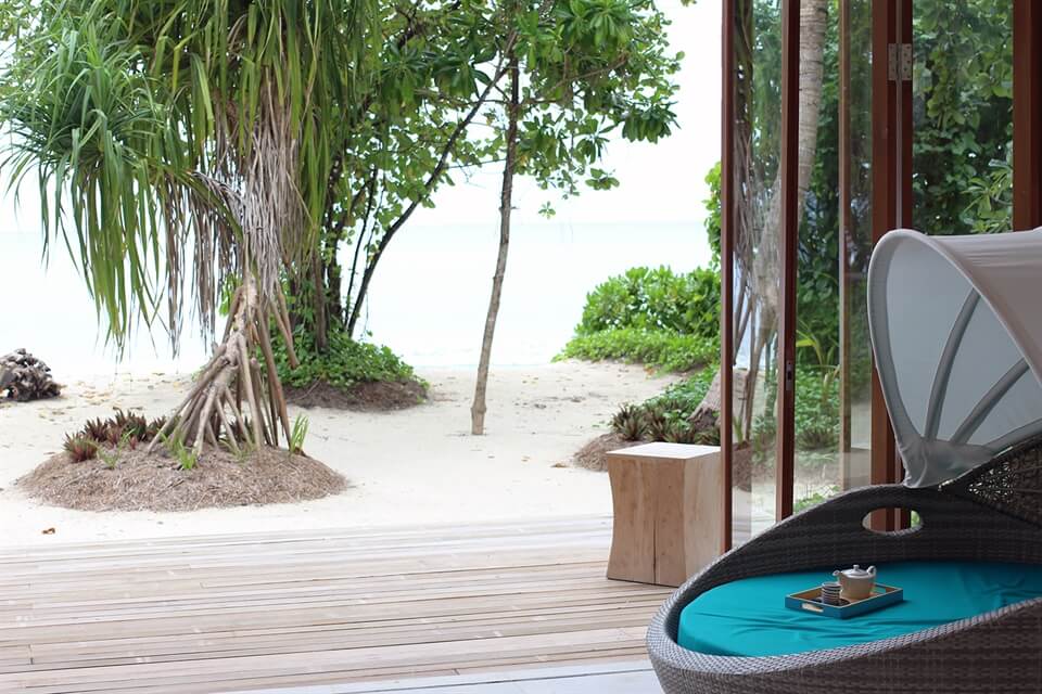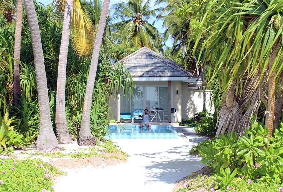 I'd love to say that that was the moment I relaxed, but it wasn't. I didn't fully feel free from the stress of the journey until the following morning when I woke after a ten hour sleep and pulled back the curtains to see our private pool and a short walkway leading to the beach...
