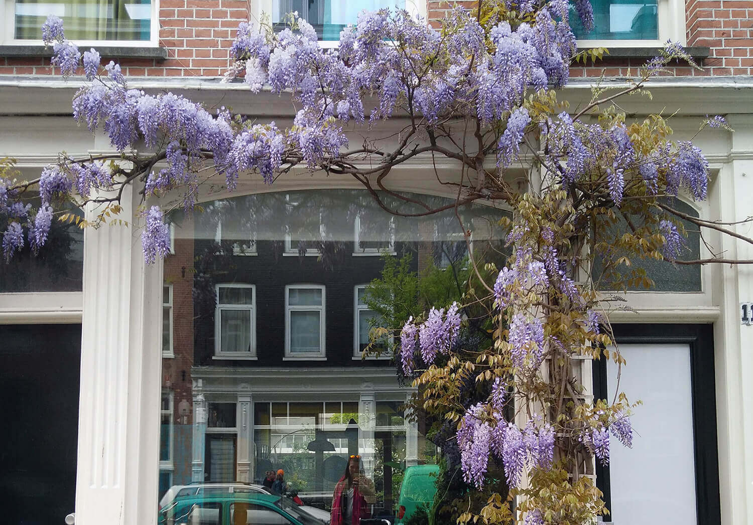 Just when you thought I wasn't going to mention flowers or blossom again, I save one more for last! As the last of the pink blossom dances down from the trees in Amsterdam around mid-April, you'll then start to see the climbing vines on many town houses begin to bloom with beautiful lilac wisteria. These beautiful purple flowers can be found all over the city but I like spotting them along the Weesperzijde side of the River Amstel on my way to a waterfront drink in Bar Hesp. Lekker!