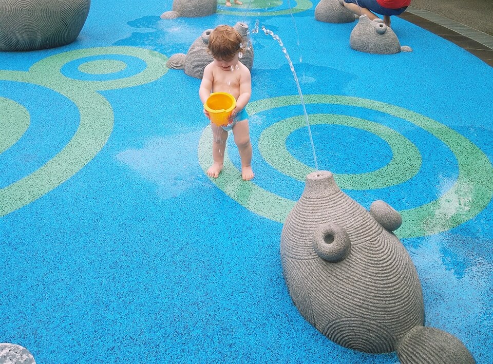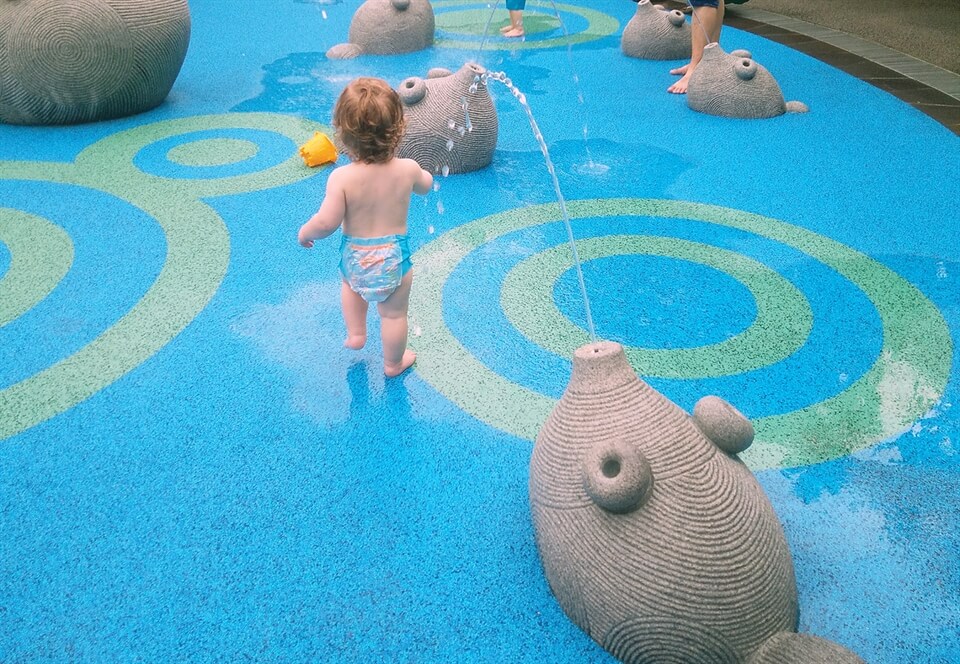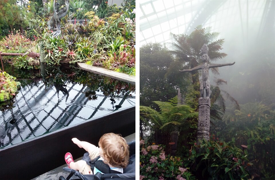 And it wasn't a total disaster for Baby Bird. There was a lot to look at, he could get out of his buggy and run around (most of the areas) and it was a good place to be when the weather was a bit stop-start in terms of rain as there was a lot of cover around. And then when it cleared for long enough we found the childrens' play area... which was basically like a water park so Baby Bird got wet there too. But he at least he got to run around and I somehow managed to dry him with a spare nappy. So yes, the Gardens by the Bay was a big hit for us.