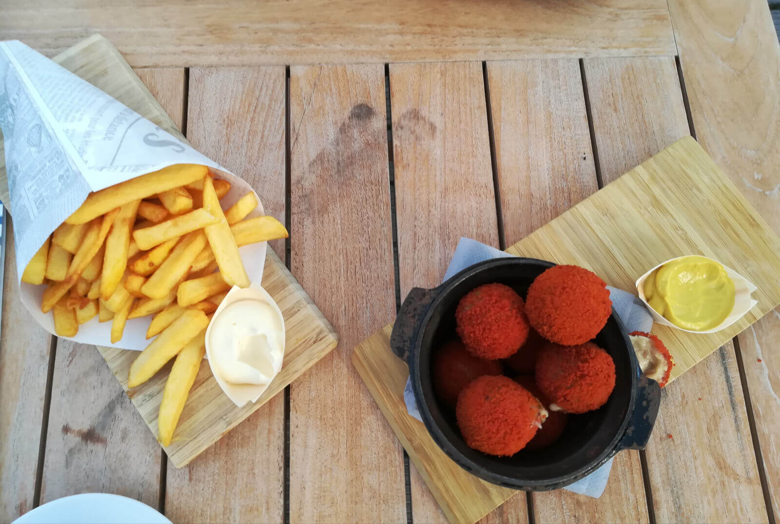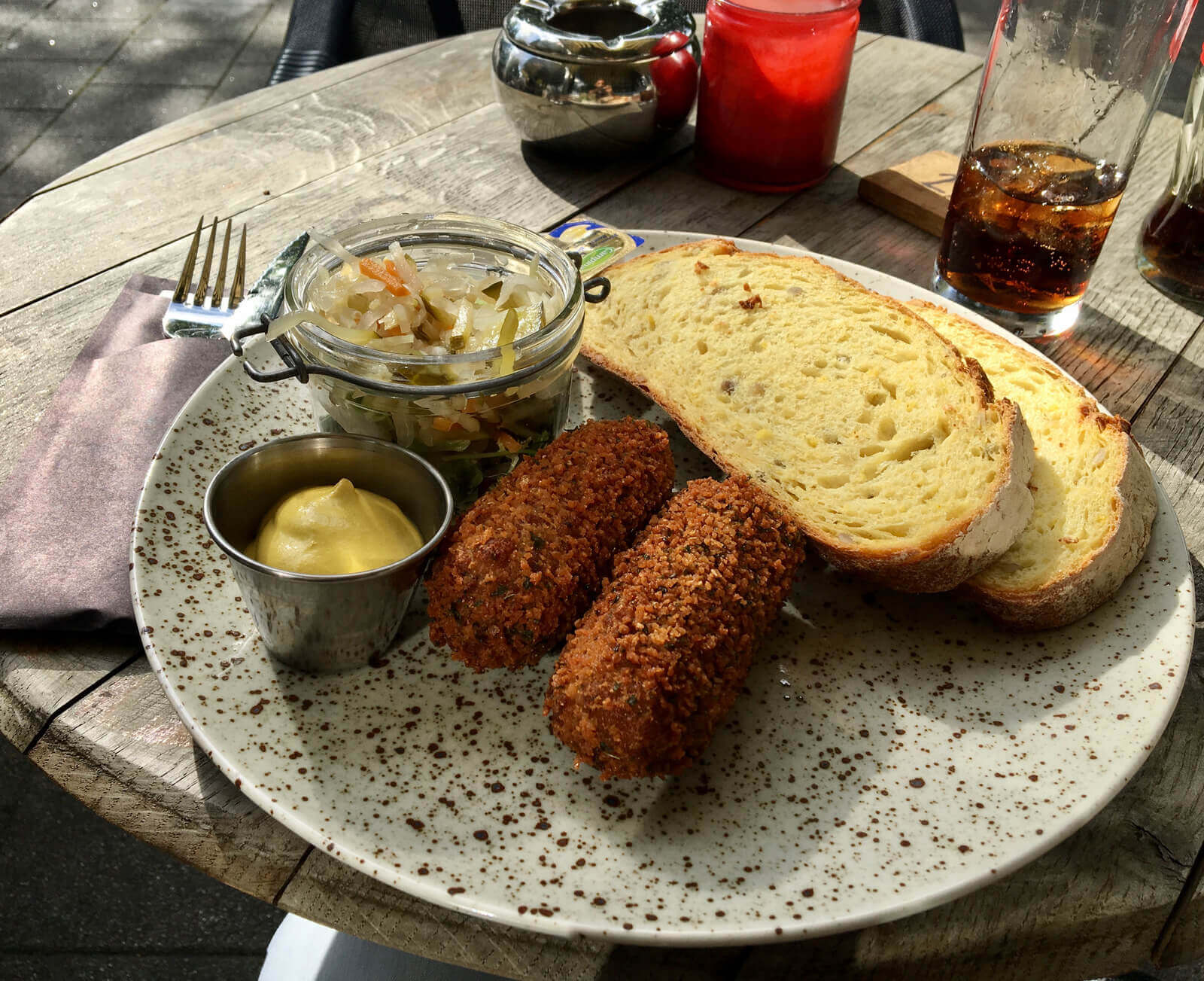 What is basically bitterballen but in different shapes, kroketten are one of the most popular street foods in the Netherlands and you'll most typically find them served with two plain (no butter!) pieces of bread for you to either assemble a sandwich or cut into the croquettes and spread over the bread.