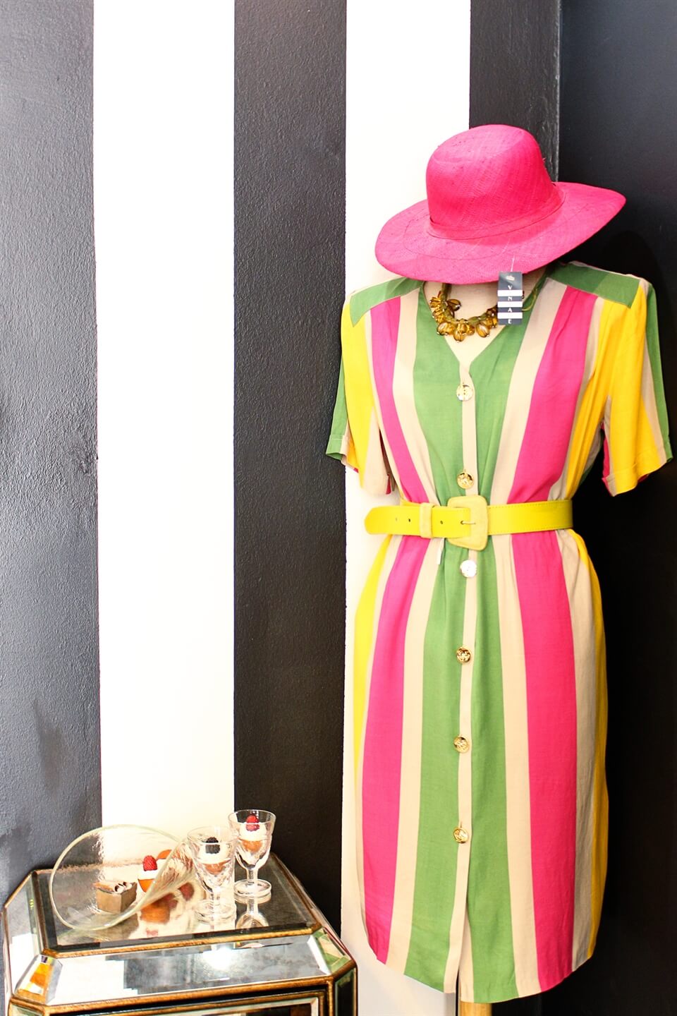 Inside the walls are painted in thick black and white stripes and the store is set out over two areas, a number of stairs separating them. The front room is something of a film set, or at least a 1950s starlet's wardrobe on a film set with countless racks of clothes, elegant gold detailed chairs and shoes strewn across the floor. Up the steps there are more racks and more black and white stripes and rainbows of clothes ordered by style and colour. I spent a long time in Diva's!