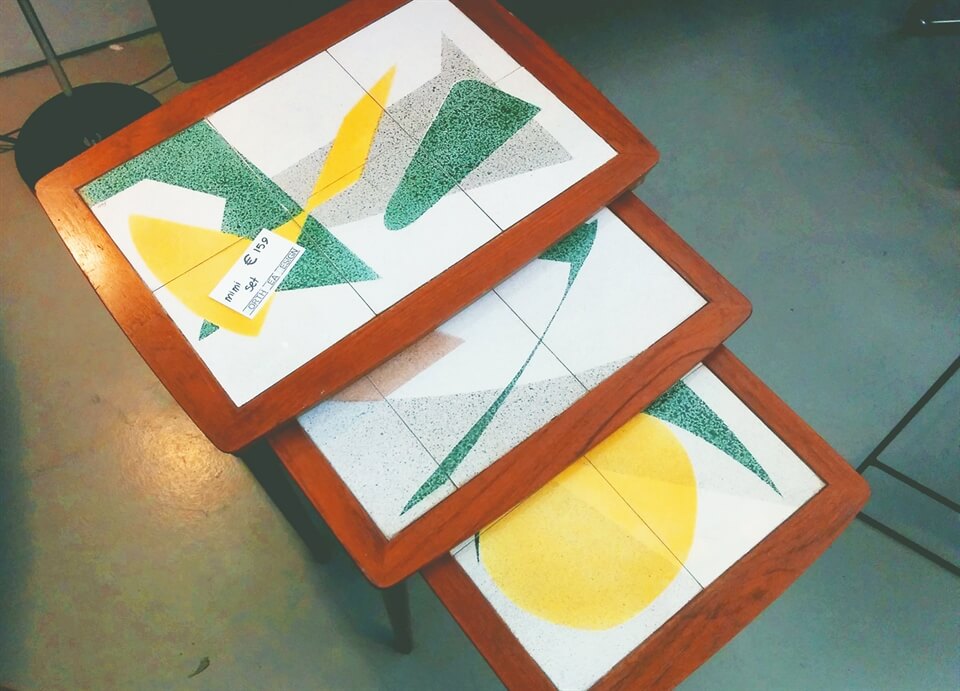Inside I found a mix of modern Scandinavian design, an array of varied vintage furnishings (I'm still thinking about the nest of tables below) and lighting and at the back, a corner full of vintage jewellery, some as affordable as just a few Euros. Definitely worth finding and you won't regret that walk along the Luchtsingel if you do!
