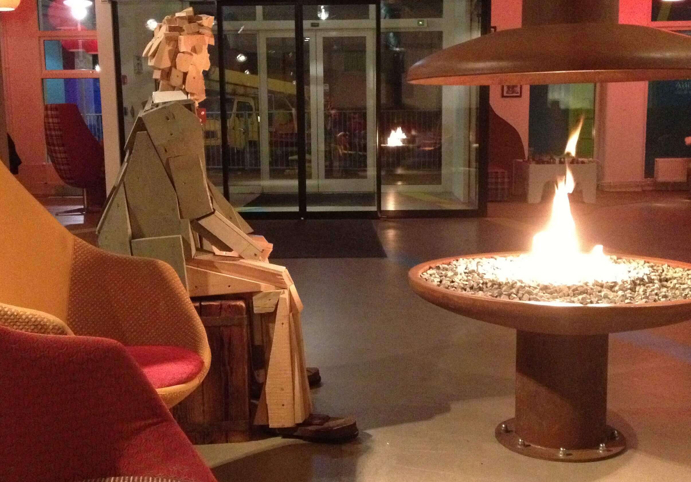 The rooms are fairly small but comfortable, and have quirky decor on a maritime theme - ours had a giant mural above the bed of a boy holding a headless fish which was a somewhat interesting design choice! Downstairs in the lobby and restaurant the fun design continues. In the hotel lobby there’s a large open fire which gives the whole place a warm and welcoming vibe. You can also meet one of the permanent residents, a sculpture of a wooden man who sits beside the fire.