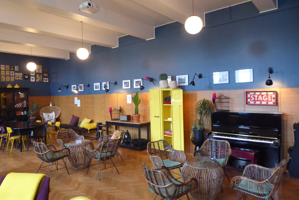 The hostel provides simply furnished twin rooms with basin and cupboard inside the room and shared bathrooms on the floor. Apart from the rooms, there’s a well equipped shared kitchen, a beautiful and cozy common room and on the other floors, there are other rooms to relax, play some games or doing yoga lessons.