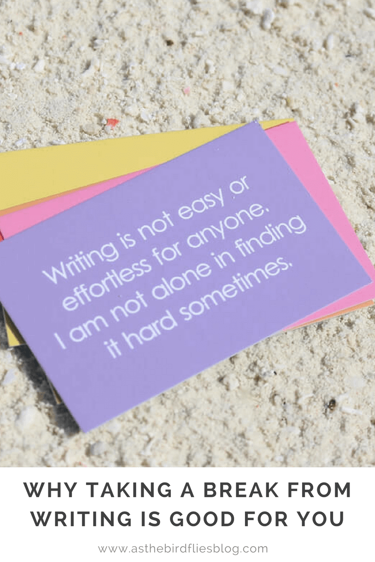 When I take a break from writing I create this stillness and silence that I crave, but I also begin a new conversation. I firstly tell myself that it's okay to not write for a while. I remind myself that focusing on other things will also progress my journey albeit in a roundabout way. I reassure the questioning part of me that I have always come back from writing breaks. I am too invested in writing to walk away completely...