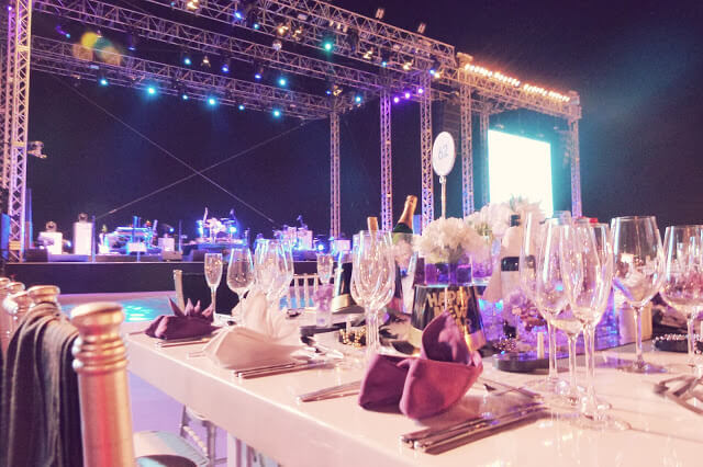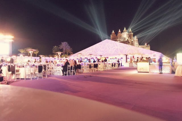For me, it all began as I sat down to dinner on the beach at around 7 o'clock. That sounds quite casual doesn't it? Well, it was almost anything but! For I was sitting down to the Royal Gala Dinner - the real highlight of the NYE celebrations at Atlantis, The Palm and the guaranteed way to have a front row seat for the fireworks. It was a grand dinner on a grand scale, with over 3000 diners who enjoyed food from around the world, free-flowing Champagne and a huge festival-worthy stage on which live music played out all night long. All this, just metres from the beach. On more than one occasion during the evening I wandered to the water's edge just to see the sea calmly touch the shore in small, gentlly caressing waves, as if to remind myself that I still had my feet on the ground.